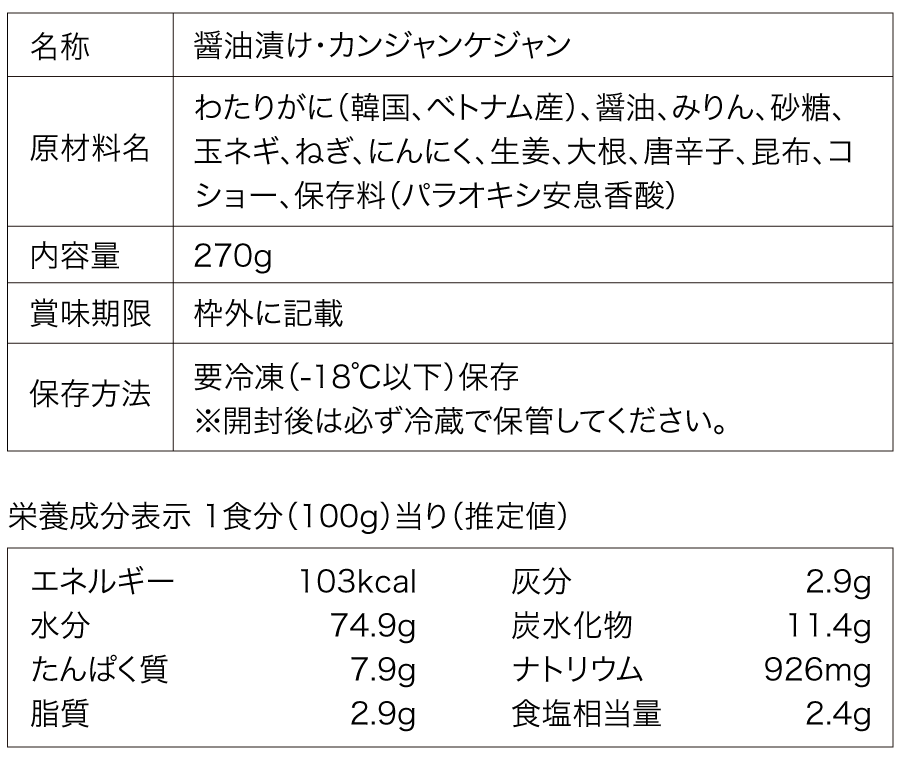 ドリームフーズ「特製カンジャンケジャン」1パック(270g)