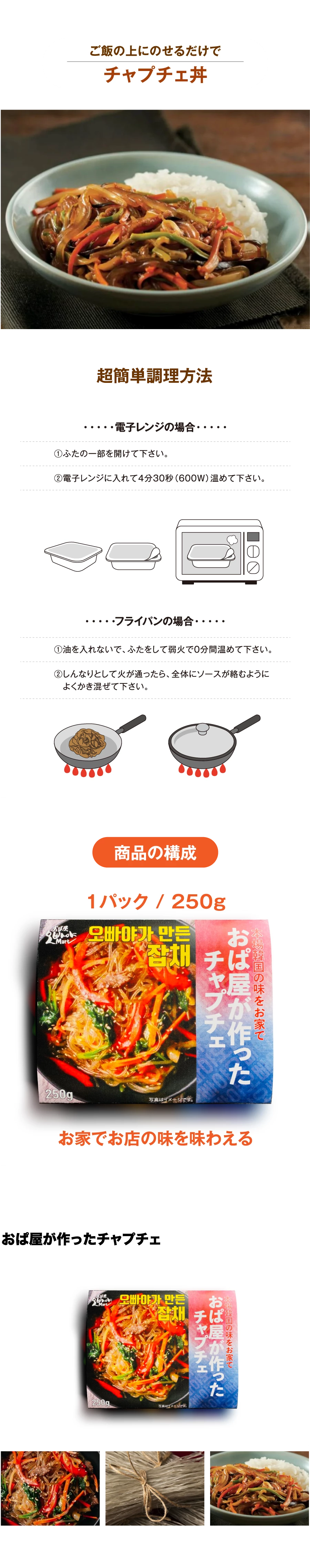 おぱ屋が作った チャプチェ 発送日目安:約1週間後 配送方法:佐川急便 送料:詳しくは配送料金表をご確認ください。 おぱ屋が作った 「チャプチェ」 1パック(250g) 在庫状態 : 在庫有り ¥380(税込) 数量セット